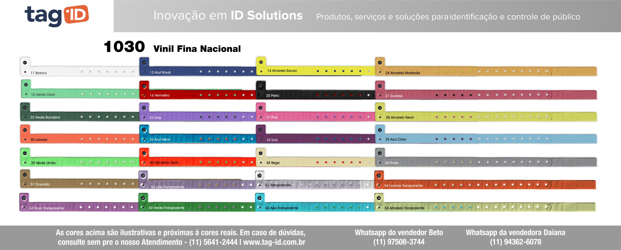 Quant. mínima: 100 pulseiras – 10 unidades por cor ou arte.
