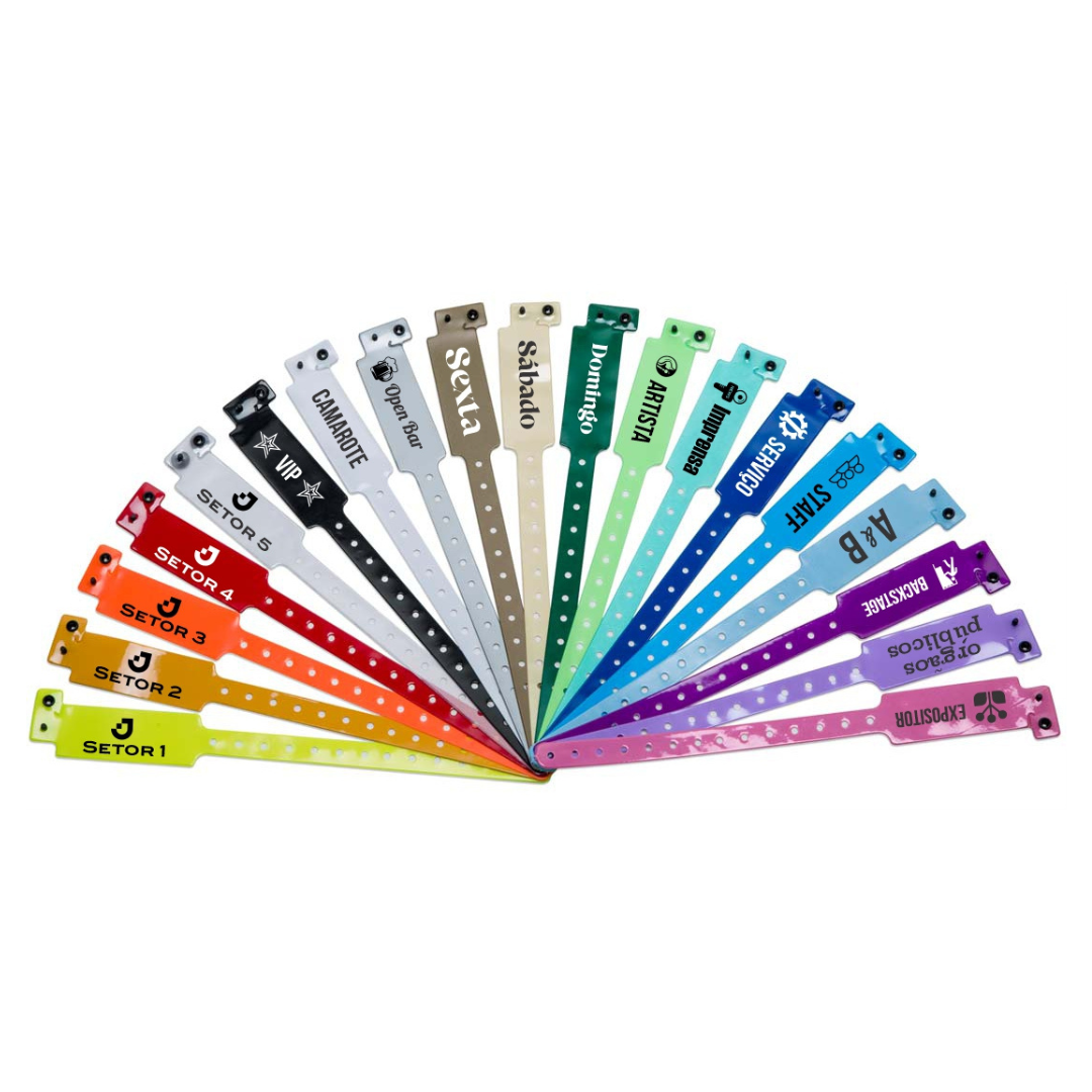 Com fecho inviolável, são intransferíveis, confortáveis e altamente visuais, garantindo praticidade no controle de acesso, identificação de público.